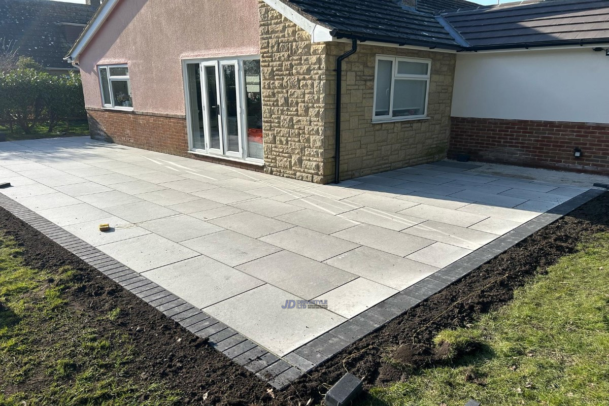 Porcelain Tiled Patio with Brick Border in Bromley, Kent