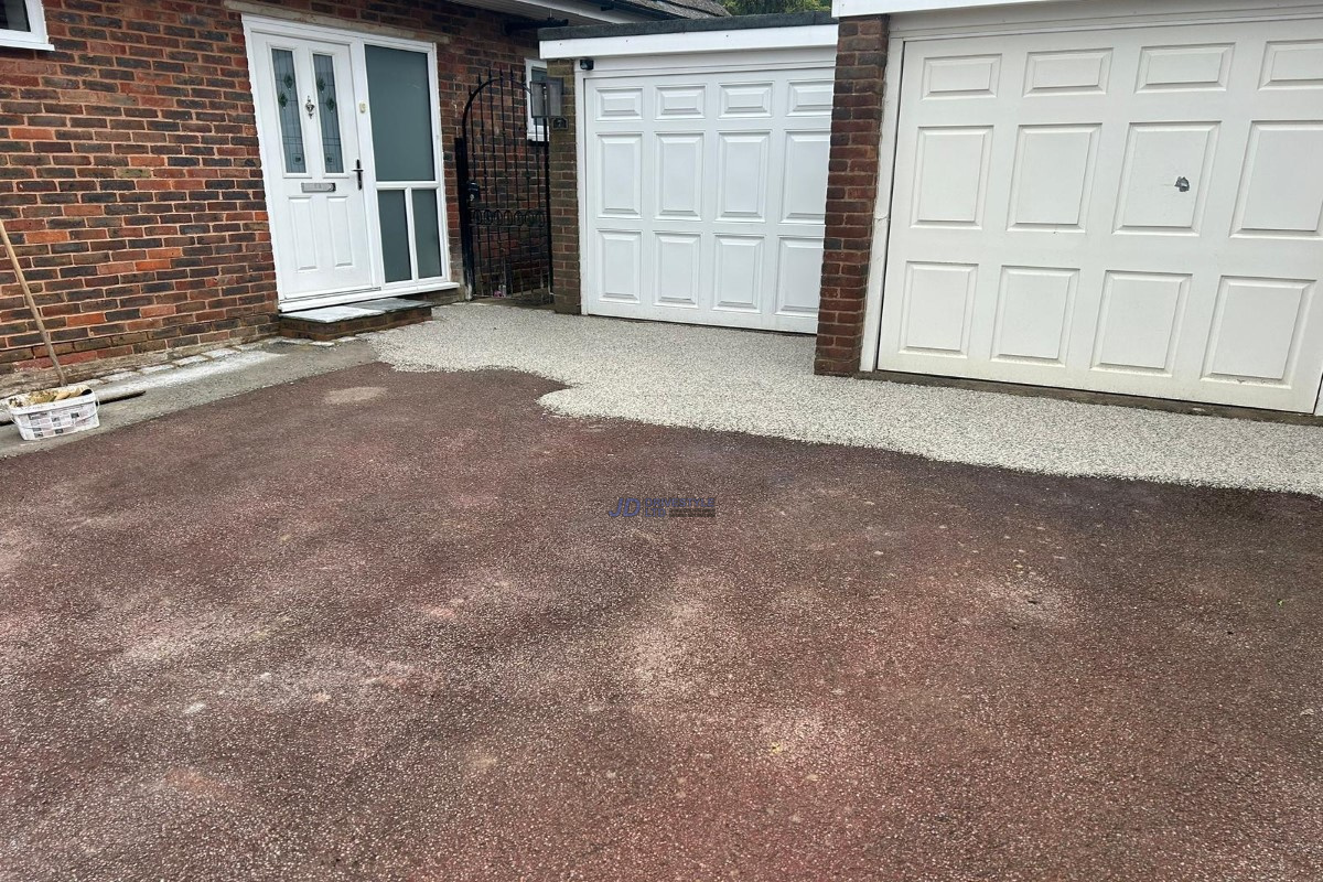 Dug out and removed the area, Graded off the surface, Redesigned the layout of the area, Supplied and installed MOT Type 1 foundation, Supplied and installed membrane sheetingResin Bound Installation